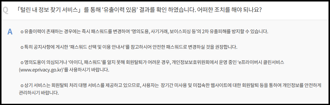 한 번 털린 정보는 되돌릴 수 없기 때문에 털린 내 정보 찾기 서비스로 정기 점검하는 습관이 매우 중요하다.