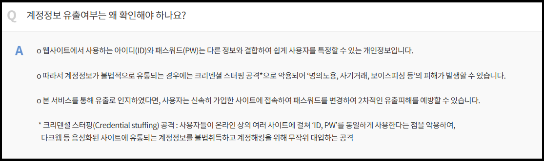 털린 내 정보 찾기 서비스는 이러한 위험을 사전에 점검할 수 있는 최소한의 보호 장치라고 할 수 있다.