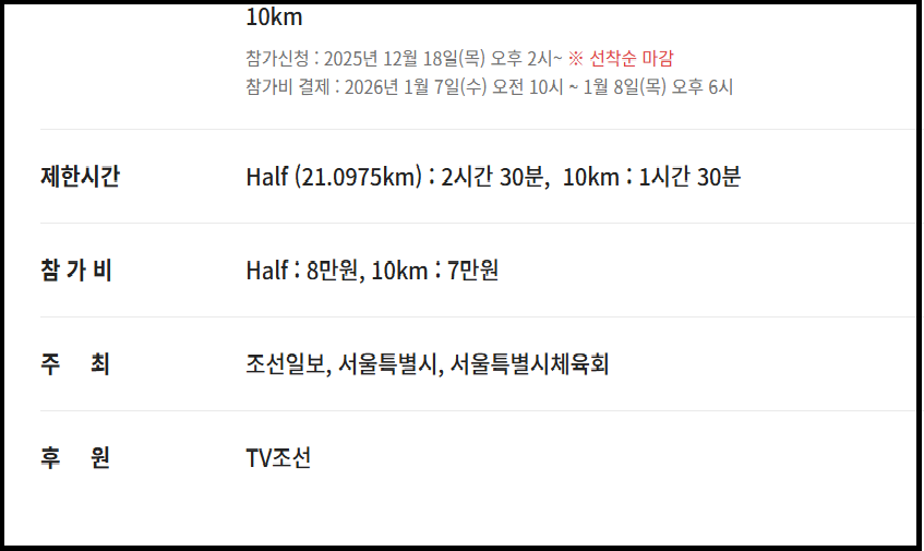 2026 서울하프마라톤 역시 건강, 도전, 기록 경신을 목표로 하는 러너들의 큰 관심을 받고 있다. 서울 도심을 가로지르는 코스와 체계적인 운영 덕분에 서울하프마라톤은 초보자부터 베테랑 러너까지 모두가 만족하는 대회로 자리 잡았다.